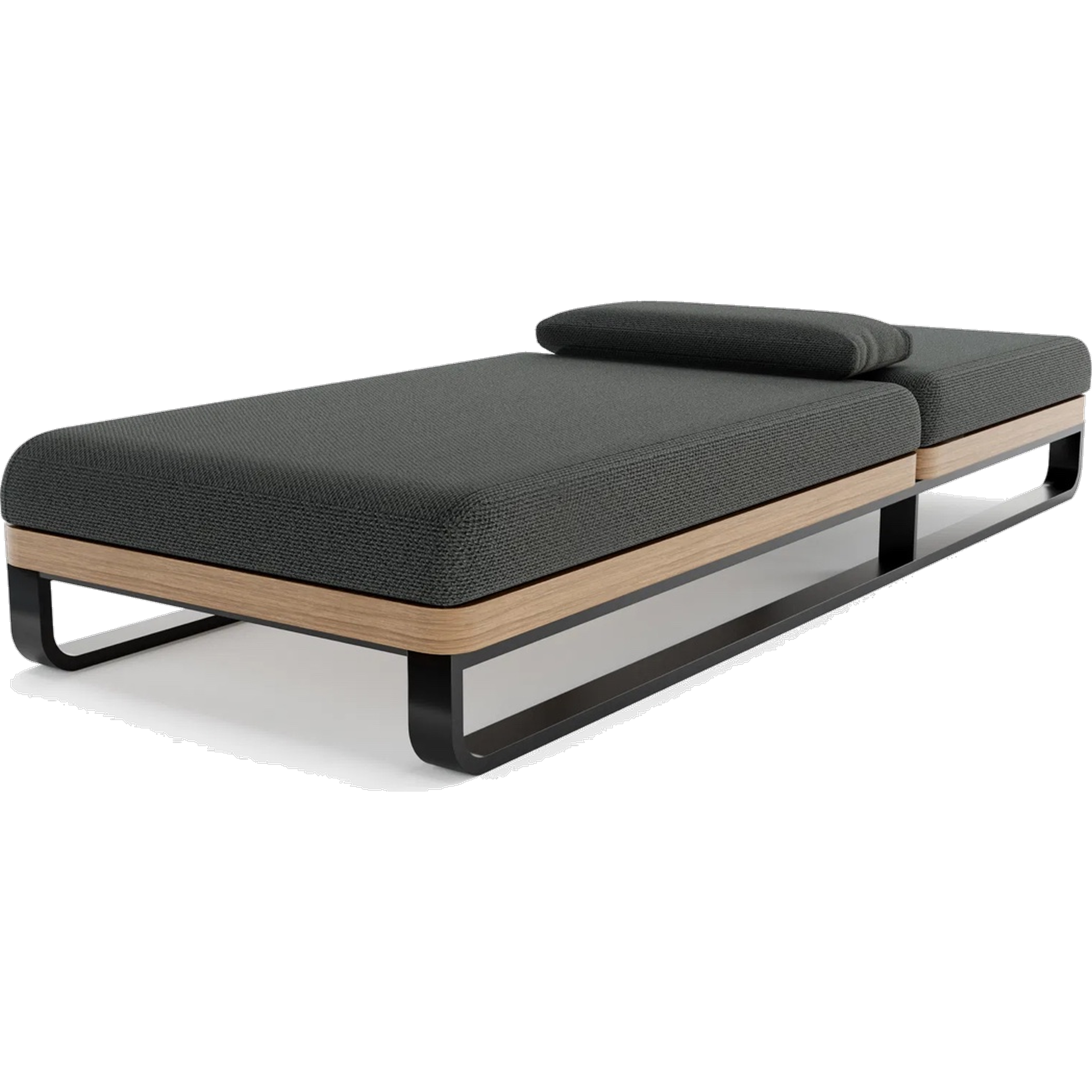 Moderne Sonnenliege mit Aluminiumrahmen, komfortablem Liegepolster und verstellbarer Rückenlehne. Stilvoll, langlebig und ideal zum Entspannen im Garten oder auf der Terrasse.
