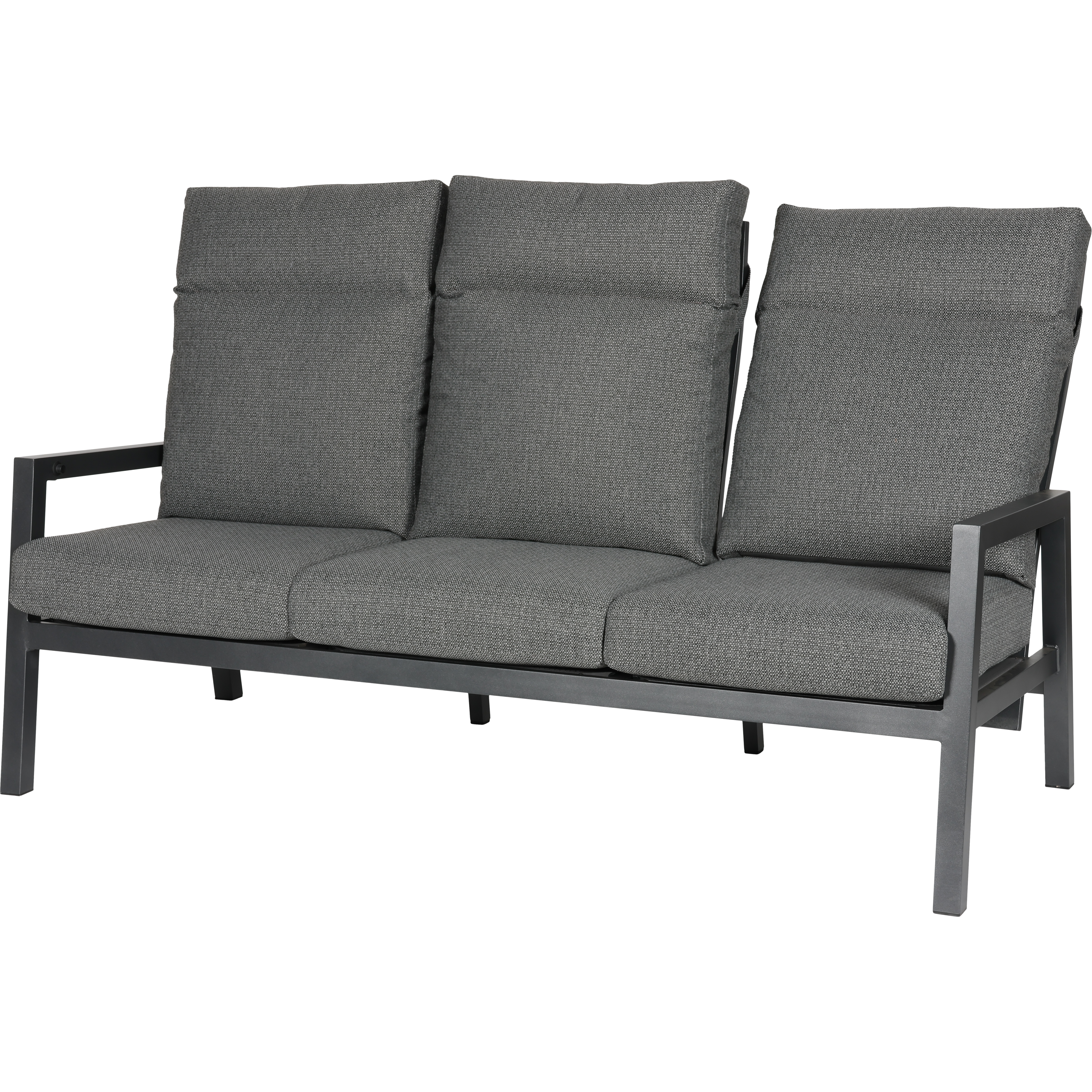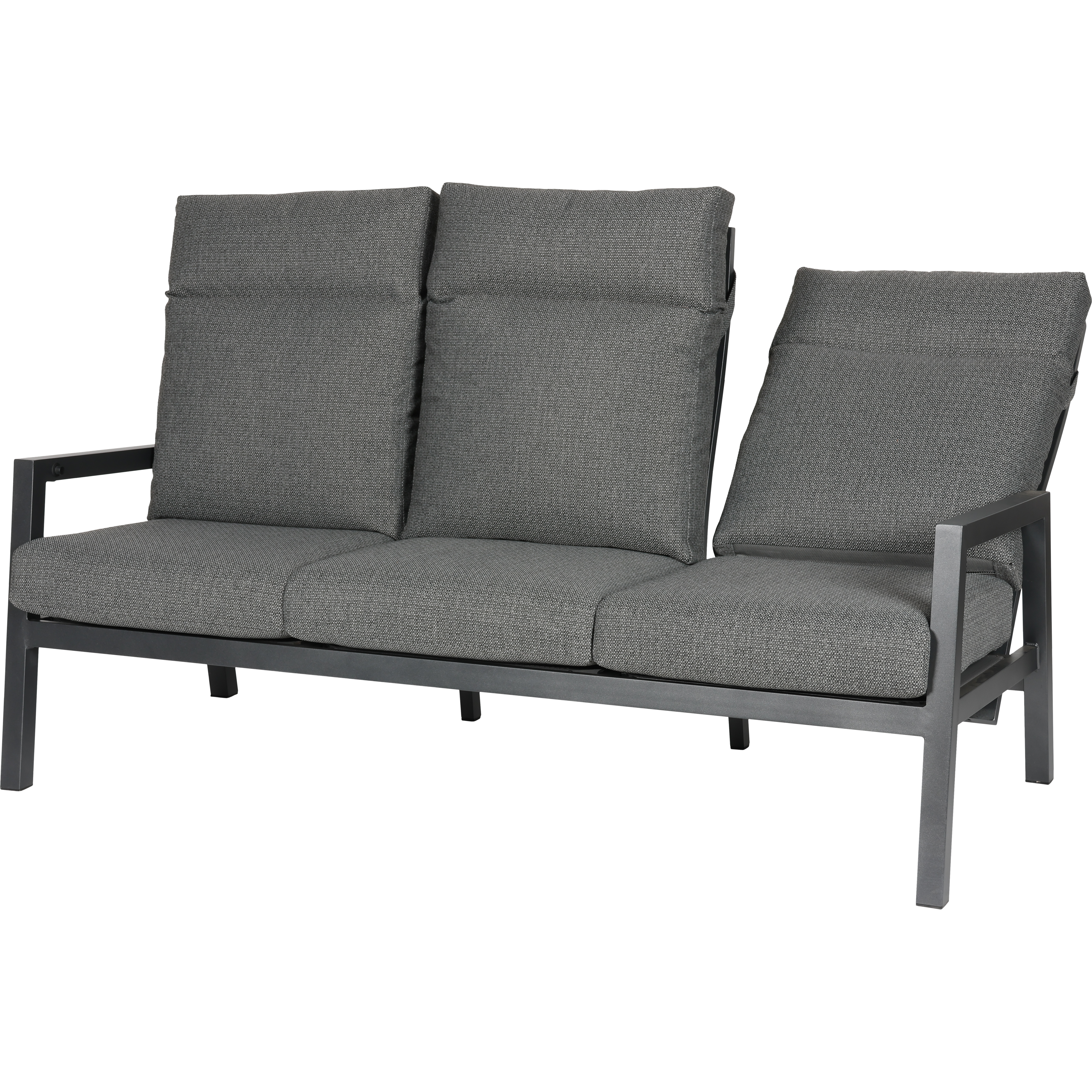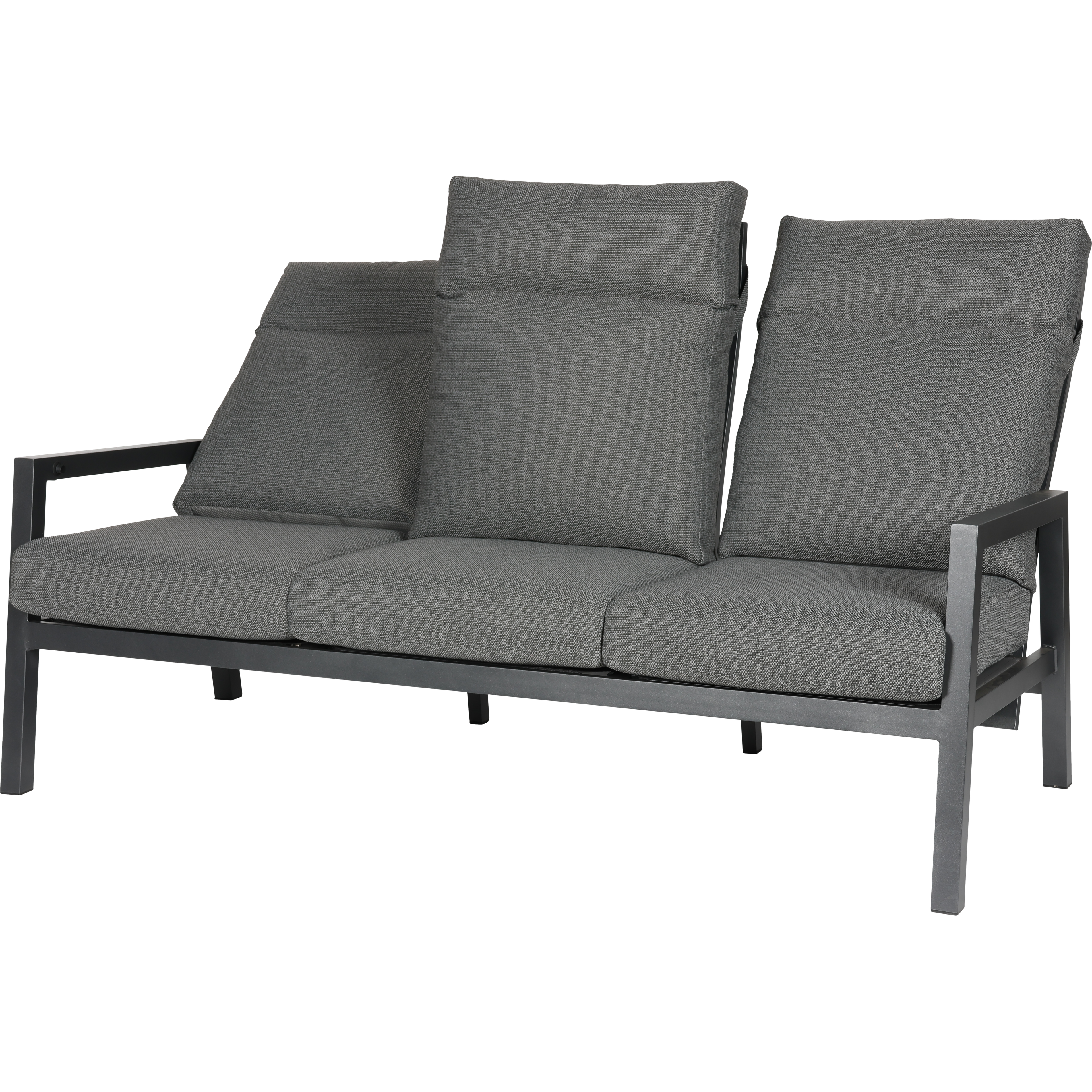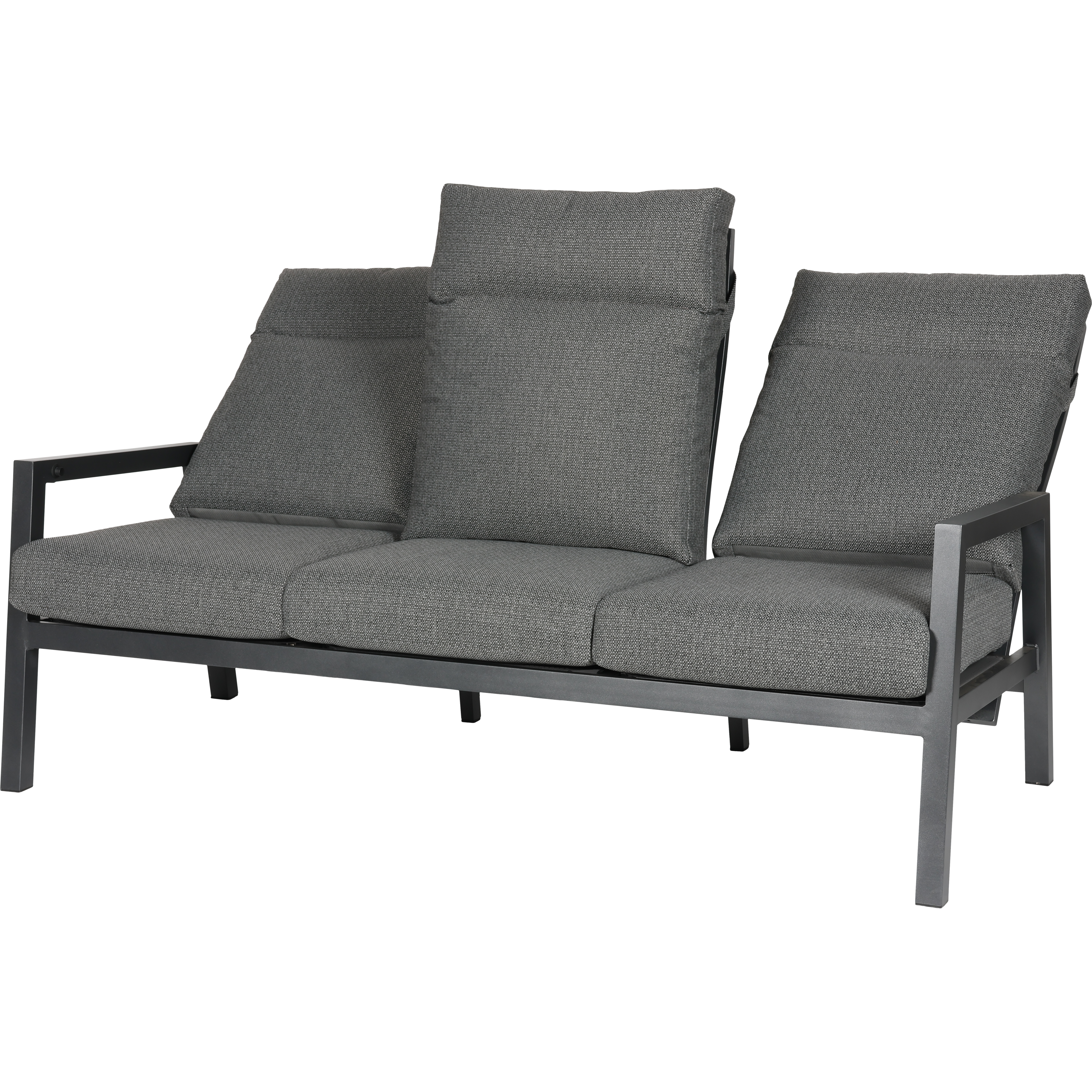 Dining Gartenbank mit stufenlos einstellbaren Rückenlehnen auf den Außenseiten und Polster Auflagen